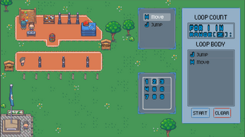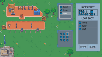 Use programming logic to guide your character to the goal. Combine loops with actions like Move, Jump, and Wait to solve each level.